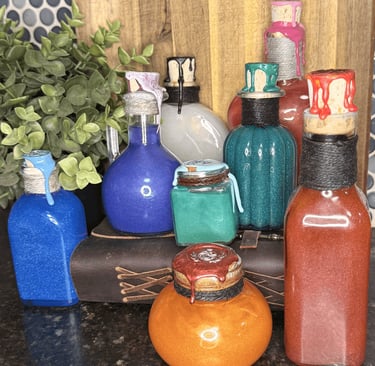 Enhance your next tabletop session or fantasy-fi your bookshelves with our Prop Potions. Made to have enchanting colors these props are the perfect addition to any fantasy lover's collection!